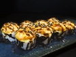 Вага - 260г.Склад - крем-сир, сніжний краб, болгарський перець. листя салату, лосось, соус Спайсі, соус Унагі, кунжут